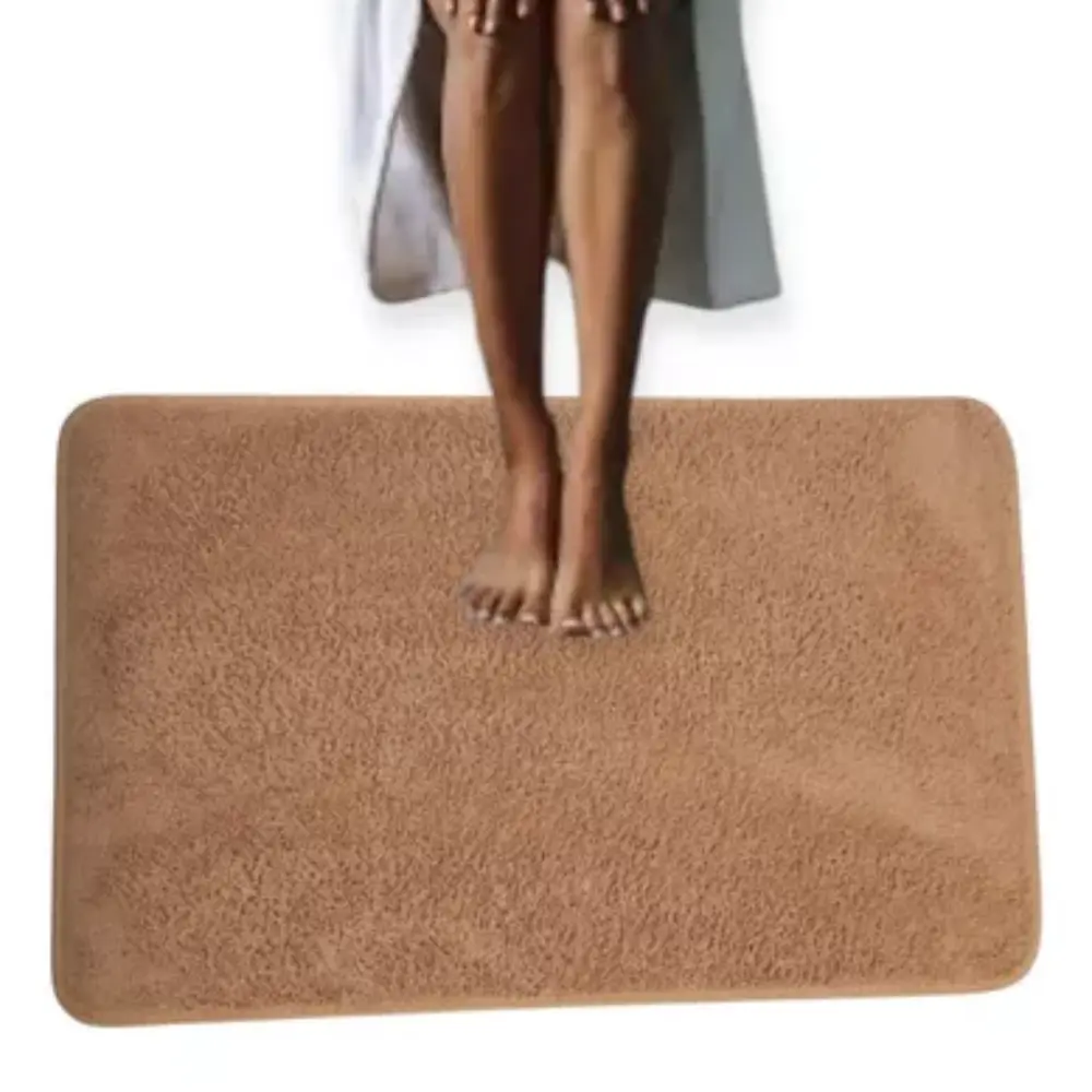 Esta alfombra de baño está fabricada con microfibra plush extra suave y densa, brindando una sensación acogedora en cada paso.