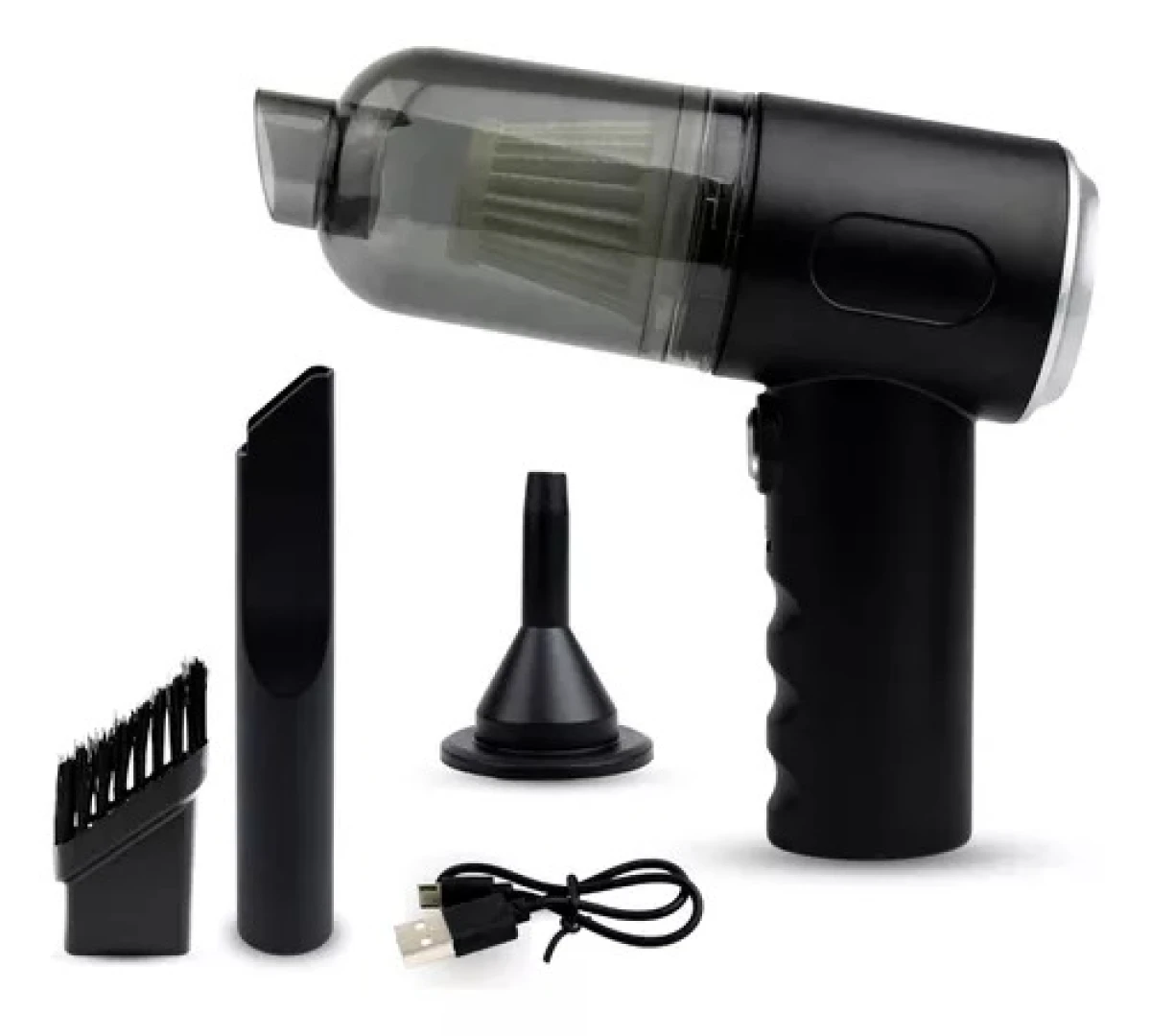 1 Aspiradora/Sopladora 1 Tubo de aspiración con boquilla rectangular 1 Tubo de soplado con boquilla circular 1 Cepillo para acoplar al tubo de aspiración 1 Filtro Lavable 1 Cable de carga