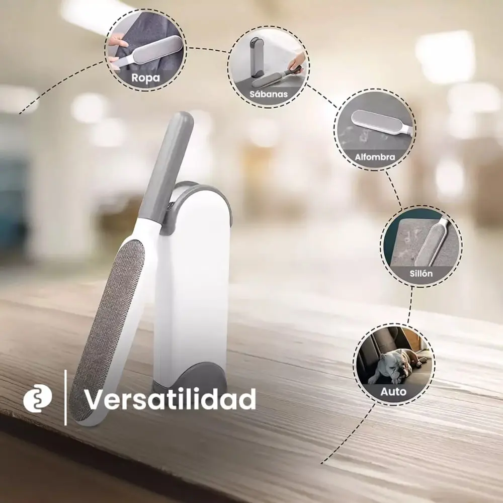 El aliado perfecto para eliminar pelos y pelusas de tus mascotas de manera rápida y eficiente. Ideal para mantener tus muebles, ropa y textiles impecables.