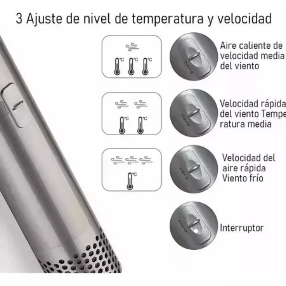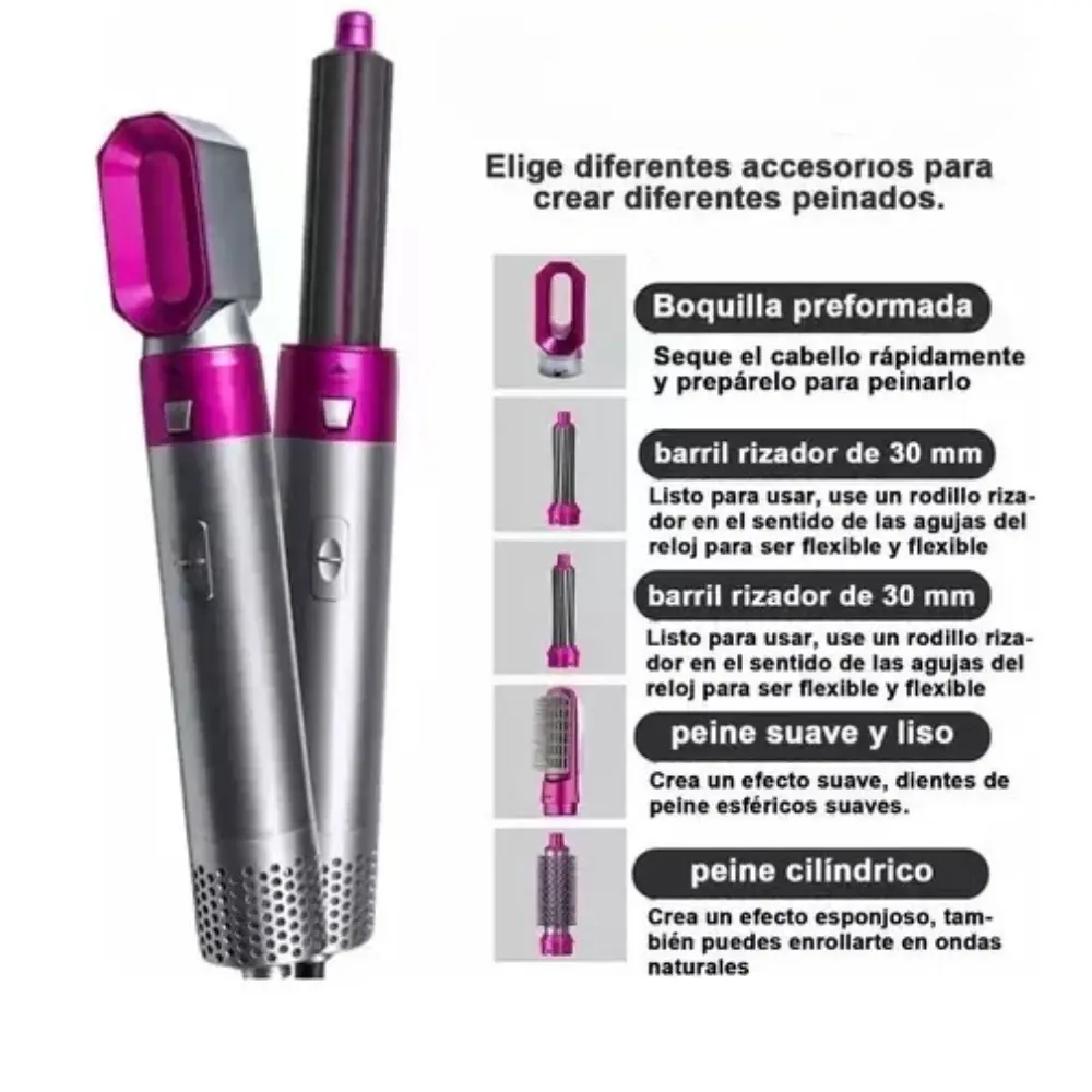 - Incluye varios accesorios para crear rizos, alisados, o volumen adicional.