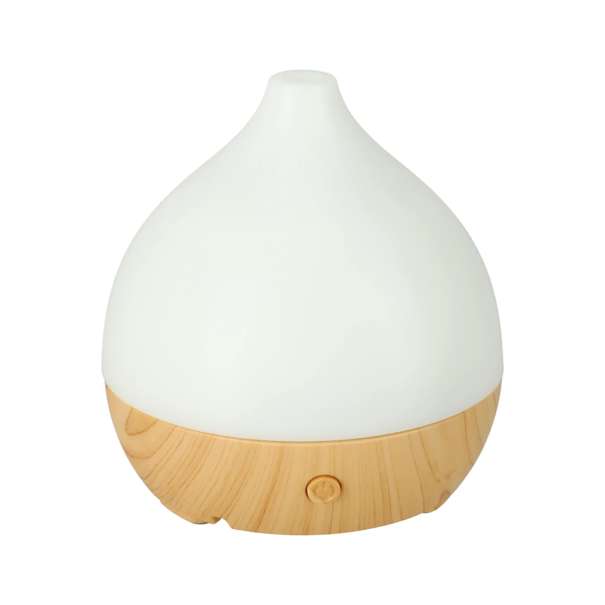 Difusor de aroma con funcionamiento por USB. Se puede usar como humidificador de aire o usar con aceite para aromatizar ambientes. Tiene una capacidad de 80 ml. Incluye instrucciones de uso.