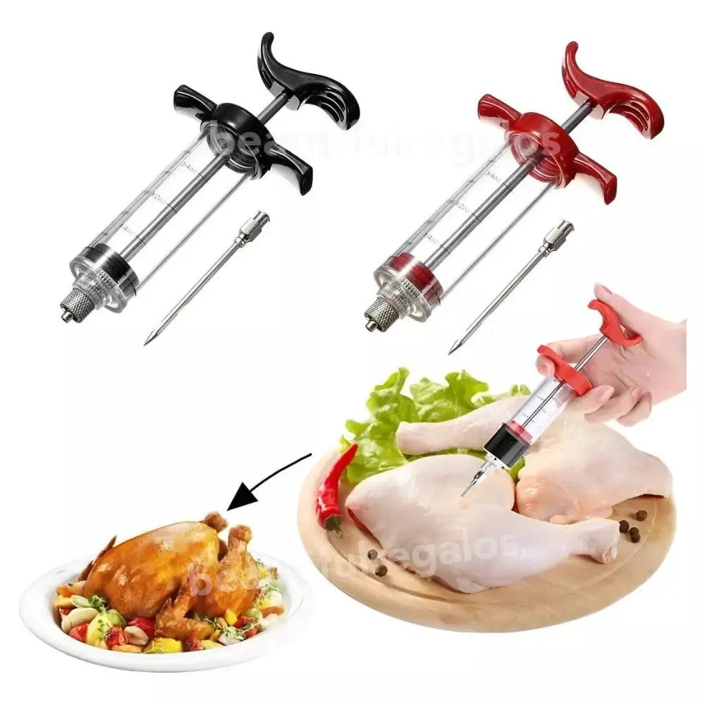 La Jeringa Gastronómica Inyectora es la herramienta perfecta para los amantes de la cocina que buscan realzar el sabor de sus carnes, pollos, pescados y otros alimentos.