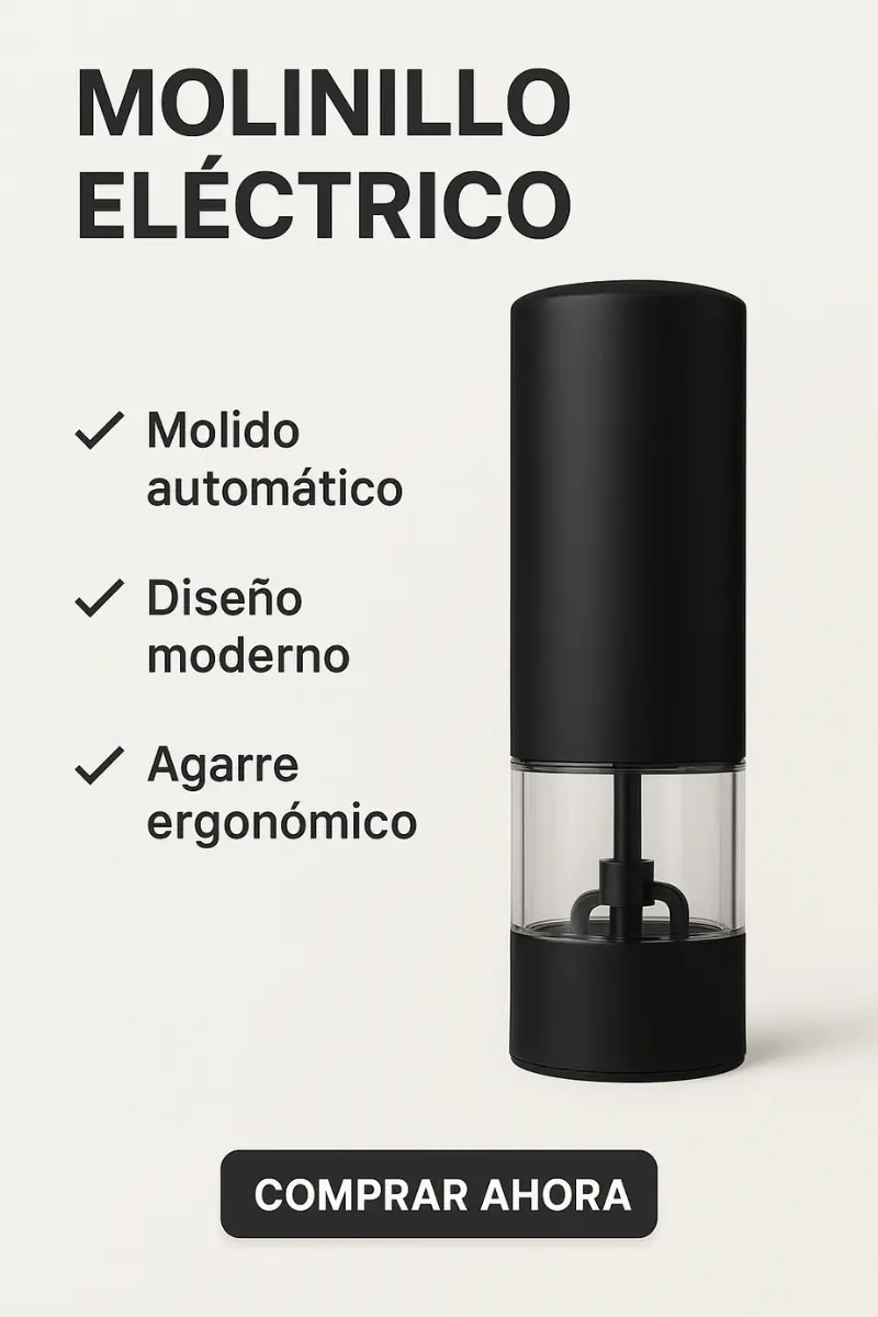 Transformá cada comida en una experiencia gourmet. El Molinillo Eléctrico de Pimienta o Sal fue diseñado para quienes disfrutan cocinar con estilo, pero también valoran la comodidad y el toque premium en su cocina.