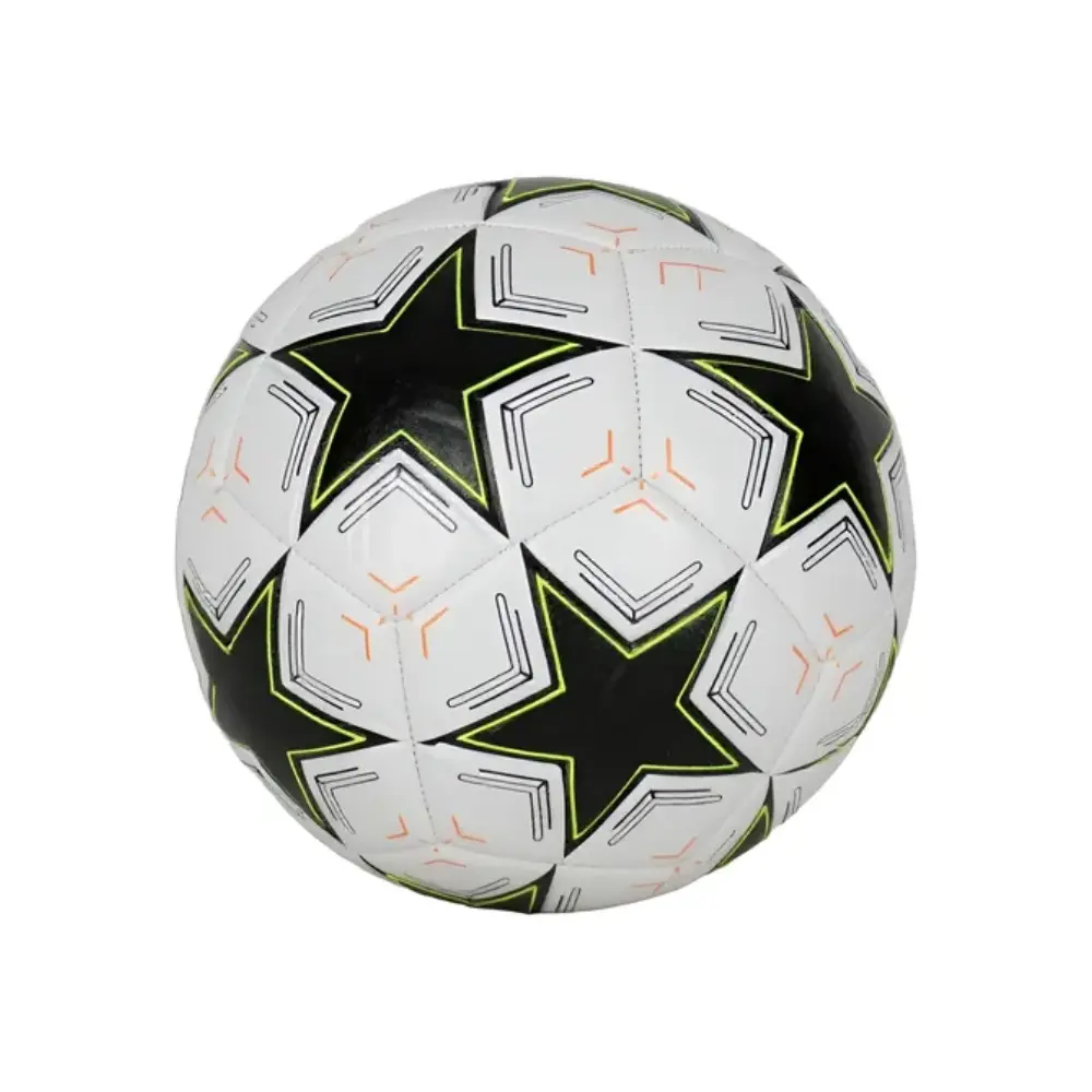Pelota de fútbol número 5, ideal para partidos, entrenamientos o juegos entre amigos. Tiene un diseño profesional con costuras reforzadas y excelente agarre al pie.