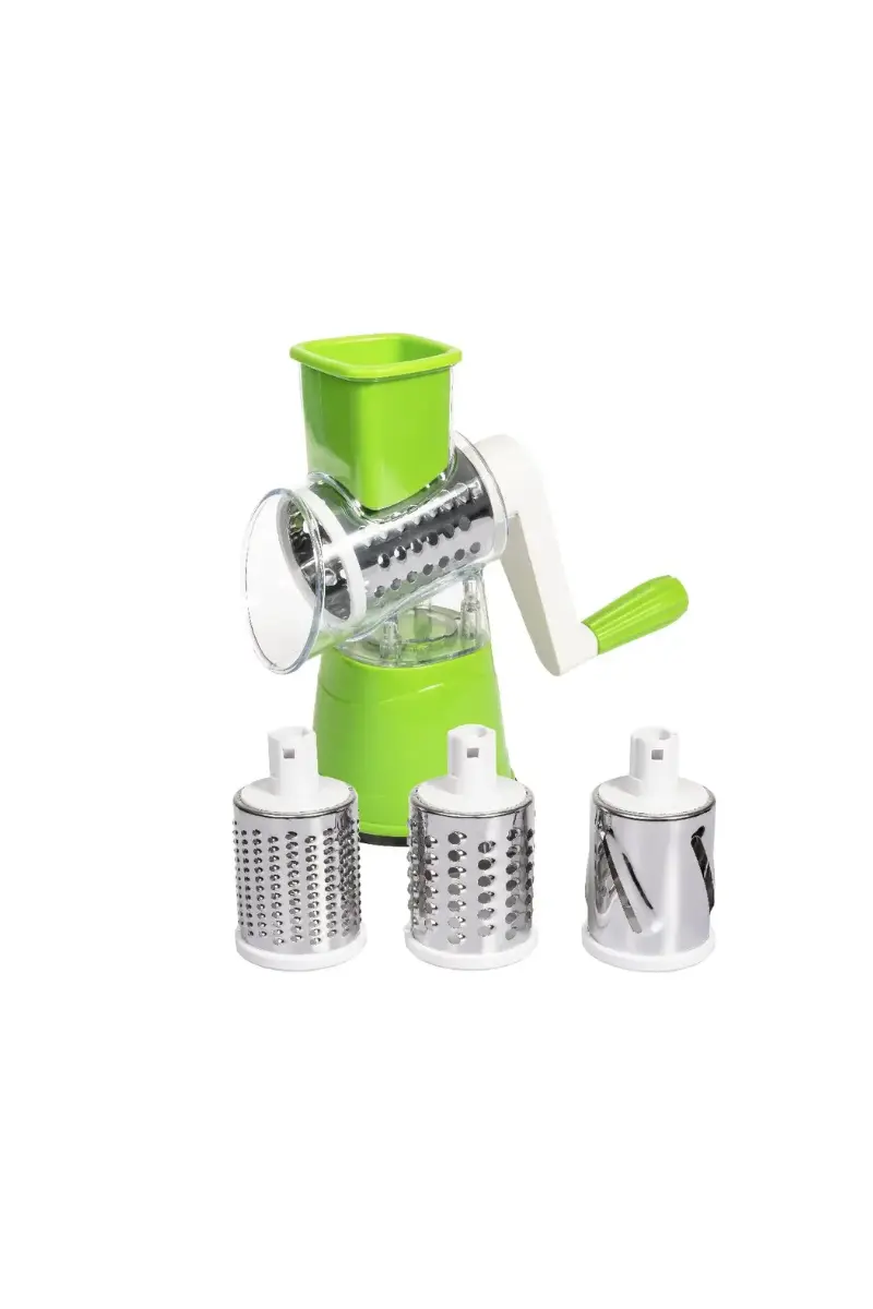 Práctica y eficiente, esta cortadora manual te permite rallar, rebanar y cortar verduras de manera rápida y sin esfuerzo. Incluye 3 tambores de acero inoxidable intercambiables, diseñados para diferentes tipos de corte: fino, grueso y en láminas.