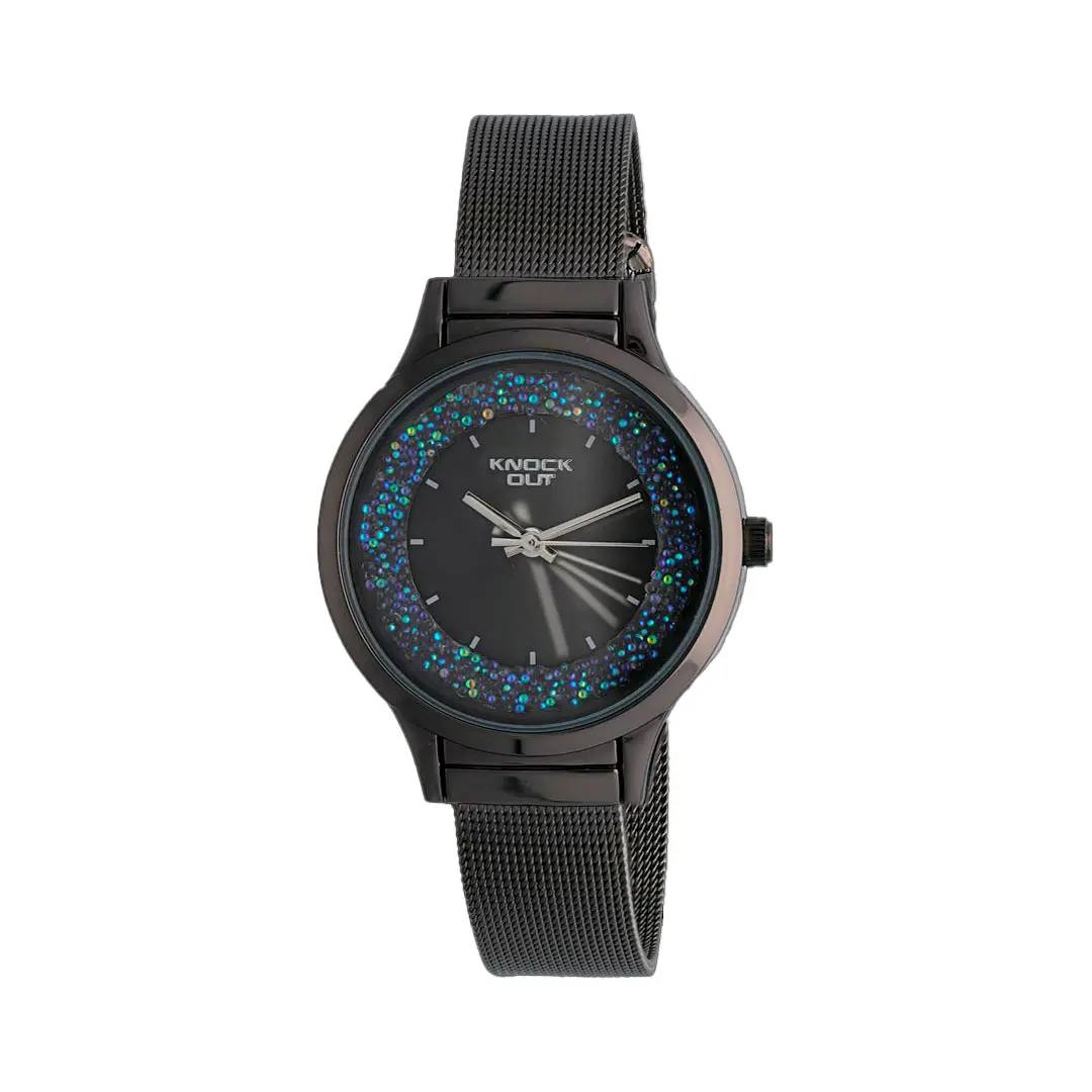 Reloj Knock Out con malla metálica y detalles brillantes.