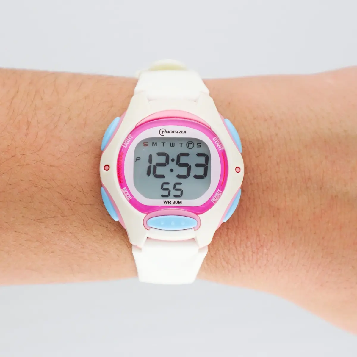 Reloj deportivo digital Mingrui, resistente al agua, ideal para uso diario y actividades al aire libre. Diseño moderno y funcional, con cronómetro, alarma y retroiluminación.