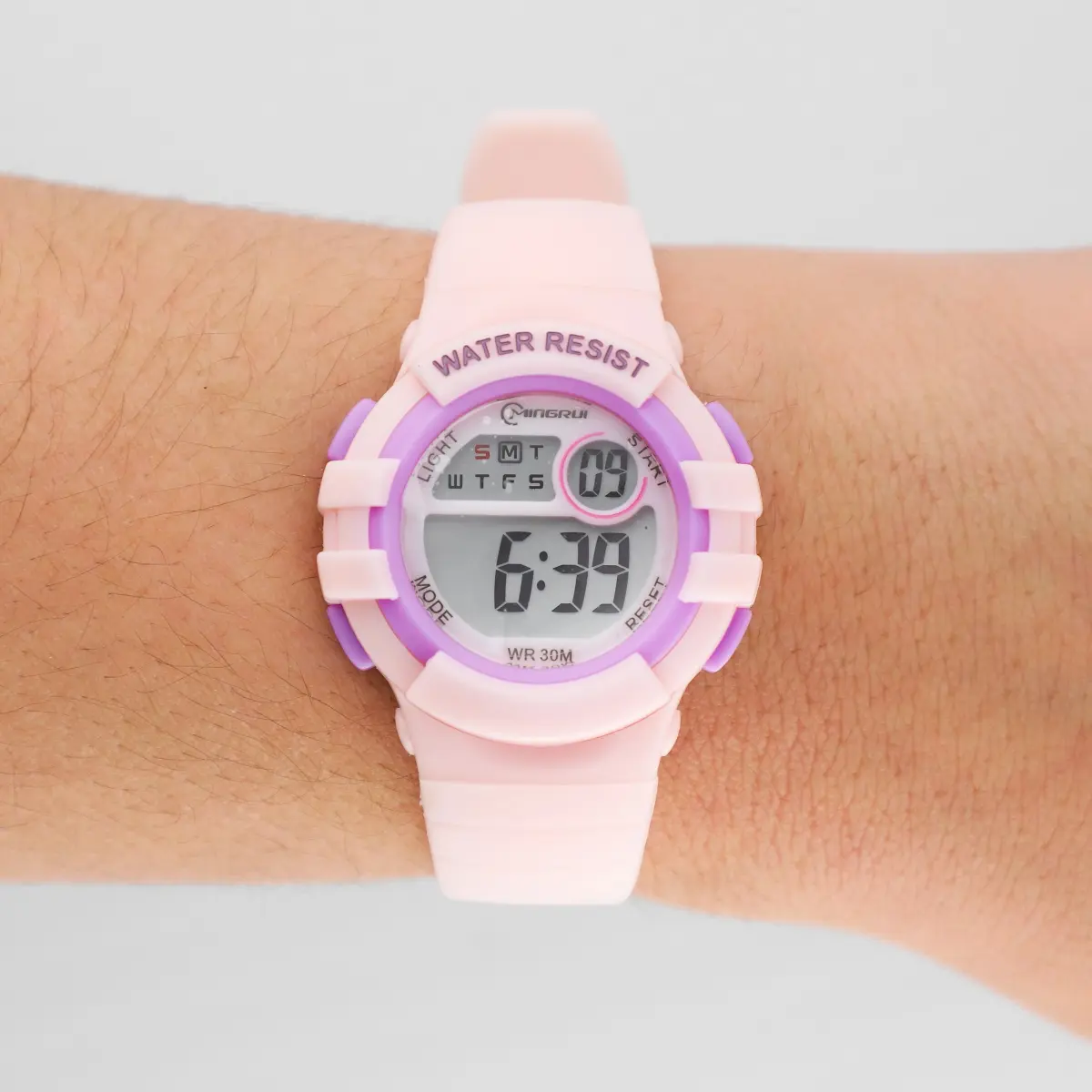 Reloj deportivo digital Mingrui, resistente al agua, ideal para uso diario y actividades al aire libre. Diseño moderno y funcional, con cronómetro, alarma y retroiluminación.