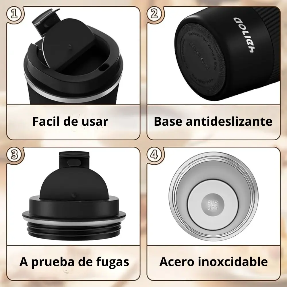 El Vaso Térmico para Café de Acero Inoxidable Premium Coffee es el compañero perfecto para disfrutar de tus bebidas favoritas en cualquier momento del día.